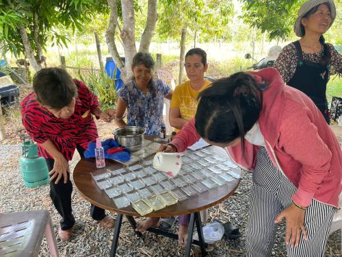 ศูนย์เรียนรู้ “โคก หนอง นา” พัฒนาชุมชน แปลงนายบัญญัติ ชาวไชย หมู่ที่ 8 ตำบลพลวง ร่วมโครงการการเรียนรู้ตามหลักปรัชญาของเศรษฐกิจพอเพียง “การทำสบู่สมุนไพร” ดำเนินการร่วมกับศูนย์ส่งเสริมการเรียนรู้ระดับอำเภอเขาคิชฌกูฏ มีกลุ่มเป้าหมายการเรียนรู้จำนวน 20 คน เพื่อสร้างการเรียนรู้แก่ประชาชนในพื้นที่ และส่งเสริมการมีส่วนร่วมของคนในชุมชนผ่านการเรียนรู้ ณ แปลงโคก หนอง นา